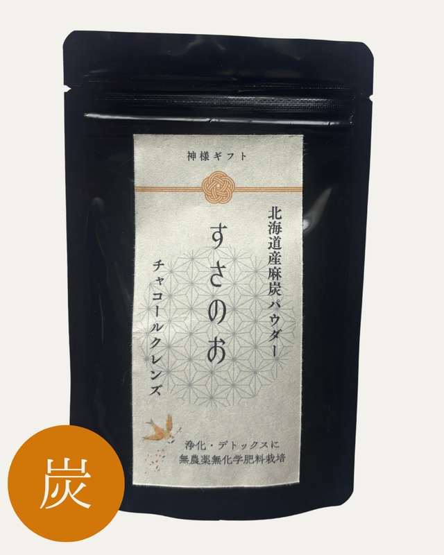 すさのお - Hemp Charcoal - 自然素材の特性を活かした“麻炭パウダー” 北海道の大地で育った自然栽培の麻を丁寧に炭化し、 石臼でゆっくりとパウダー状に仕上げました。 おがら(茎芯)だけでなく繊維部分も含んだ、希少な麻炭です。 ほぼ無味無臭で、おがらだけの麻炭と比べて素材そのものの質感を感じながらお楽しみいただけます。 麻炭は、微細な孔をもつ多孔質構造が特長の素材で、古くから暮らしの中で幅広く活用されてきました。 日々の食生活に取り入れ、 自分自身のコンディションを見つめるきっかけとしてお役立てください。 【お召し上がり方】 ・付属スプーン1杯(約0.5g)を水・お茶・コーヒーなどに混ぜて ・1日0.5〜1gを目安に、無理のない範囲でお楽しみください。0.5gで2ヶ月分です。 ・ごはんやスイーツなど、普段の食事にもお使いいただけます。 【ご注意】 ・開封時は粉が舞いやすいため、ゆっくりお開けください ・体調や体質に合わない場合はご使用をお控えください ・薬を服用中の方、通院中の方は、医師にご相談ください