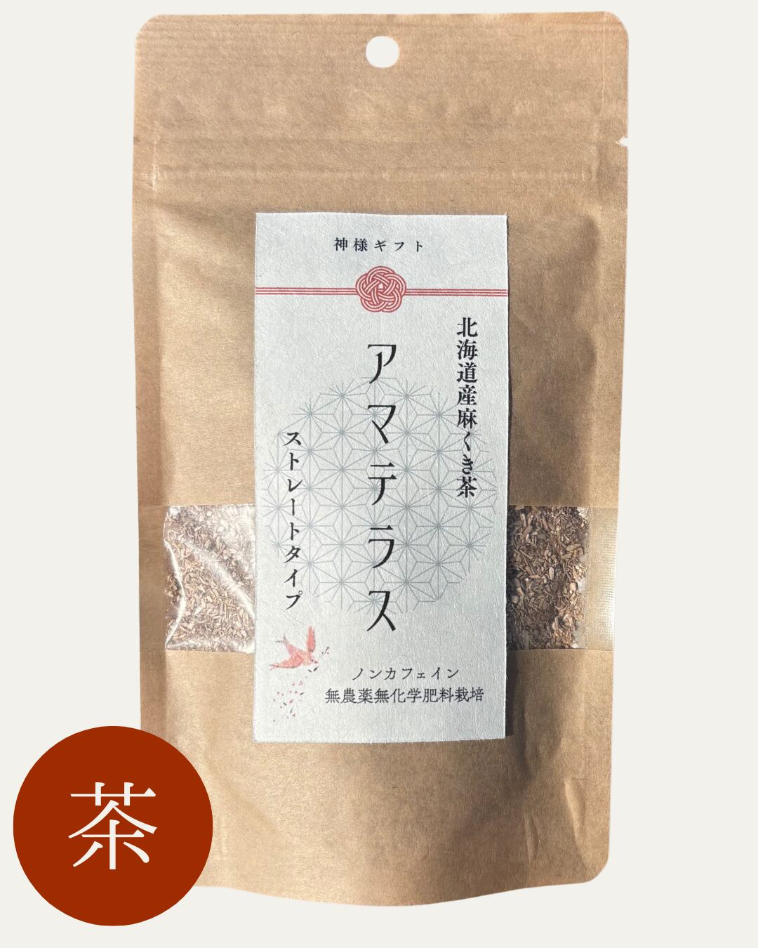 アマテラスは、北海道産の農薬不使用・無化学肥料栽培の麻茎(ヘンプ)を丸ごと使用したノンカフェインのお茶です。