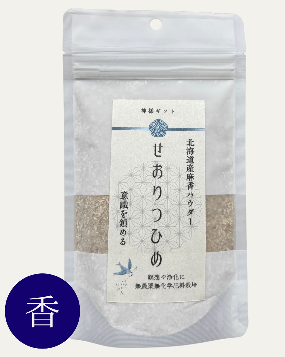 北海道産の麻茎を丸ごと乾燥・粉砕した、農薬・化学合成不使用のナチュラルインセンス。